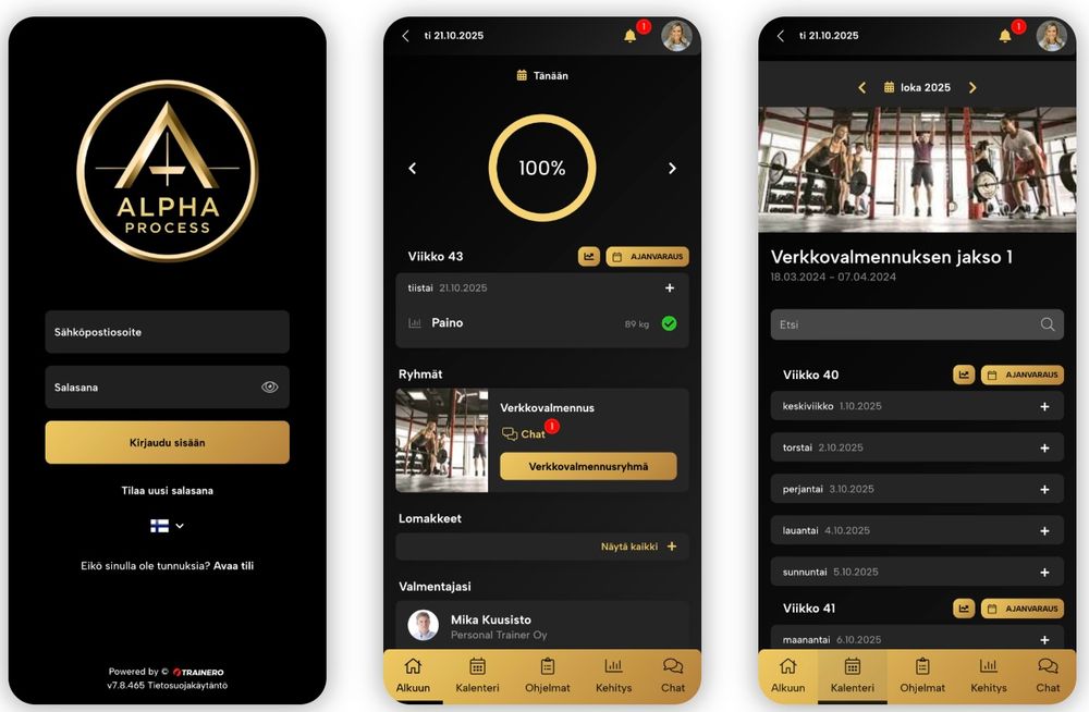 Treeni, ravinto, viikkorytmi ja seuranta löytyvät samasta sovelluksesta.